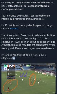 C’est rapporté par de nombreux supporters. Dans la rubrique phare hebdomadaire de l’un des plus influents sur les réseaux, «Mika» pointait du doigt les manques. Michel, Mincarelli, Orakpo, Everson, Sainte Luce (même s’il n’a pas joué hier) sont-ils au niveau Ligue 2 voire professionnel ?