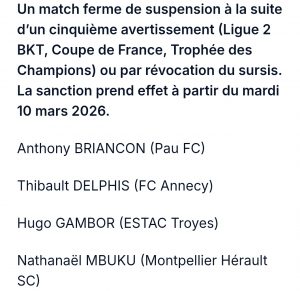 Nathanaël Mbuku sera donc suspendu lors de la réception de Laval le 13 mars.