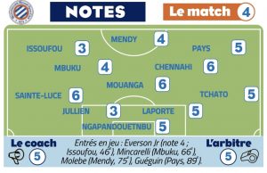 Coupable d’une erreur technique puis d’une faute en tant que dernier défenseur, Christopher Jullien, exclu à la 45ème écope de la moins bonne note avec un 3. Même évaluation pour Yanis Issoufou, qui a dû céder sa place à la pause. La meilleure note ne va pas plus haut que 6, et elle est reçue par Chennahi, Mouanga et Sainte-Luce.